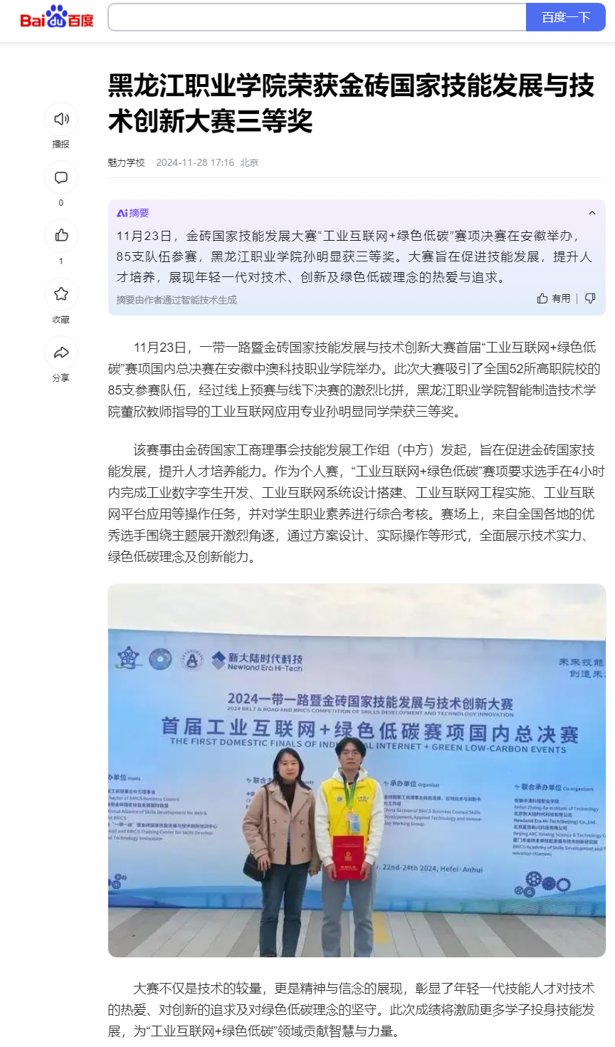 下一篇:【UC浏览器】黑龙江职业学院荣获金砖国家技能发展与技术创新大赛三等奖