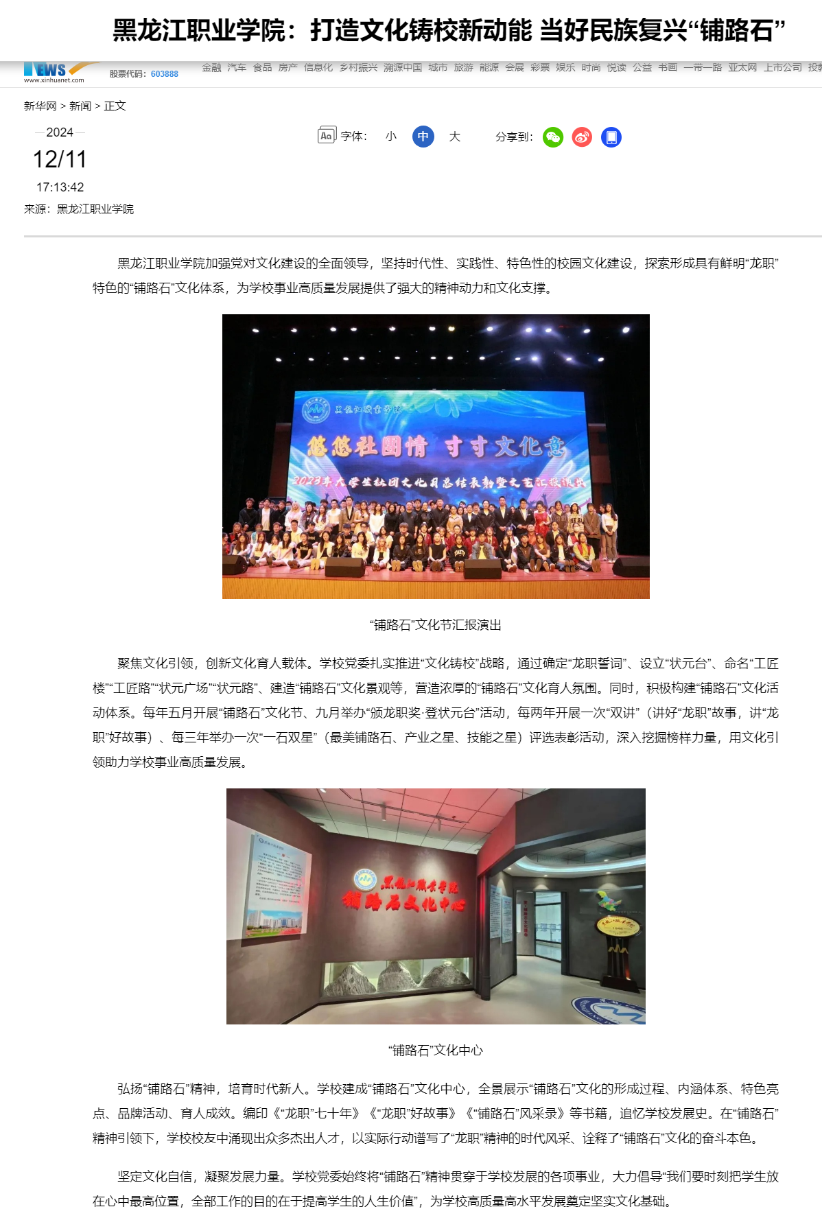 下一篇:【龙头新闻】黑龙江职业学院:激发文化铸校新动能 当好民族复兴“铺路石”
