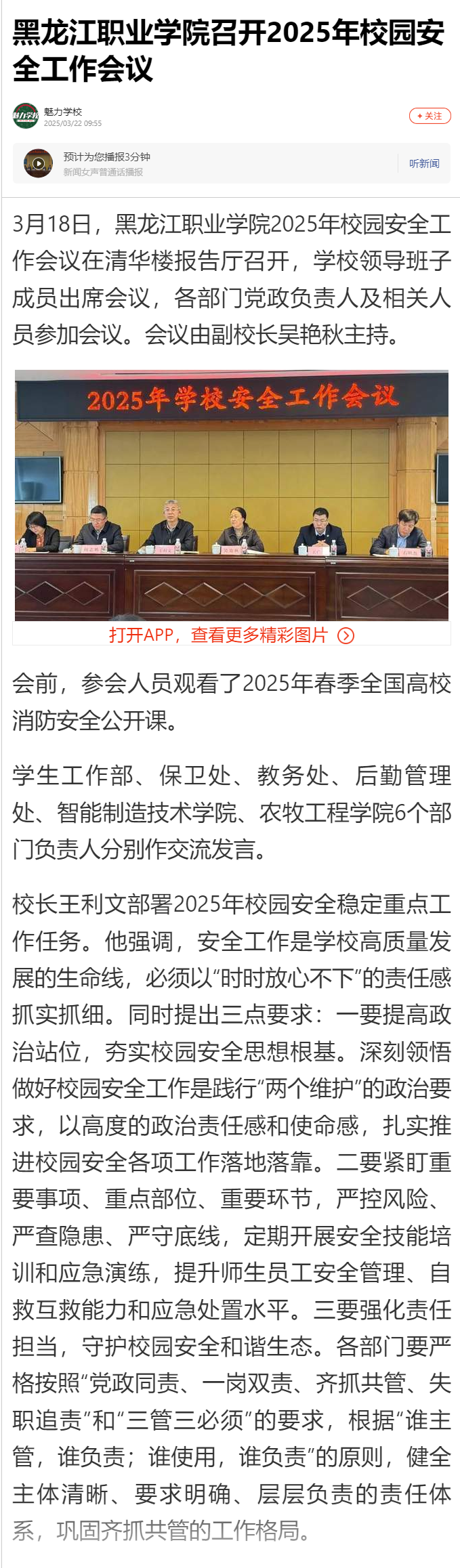 【搜狐新闻】黑龙江职业学院召开2025年校园安全工作会议