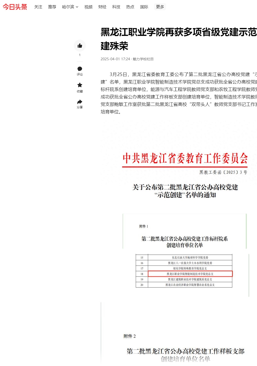 上一篇:【一点资讯】黑龙江职业学院再获多项省级党建示范创建殊荣