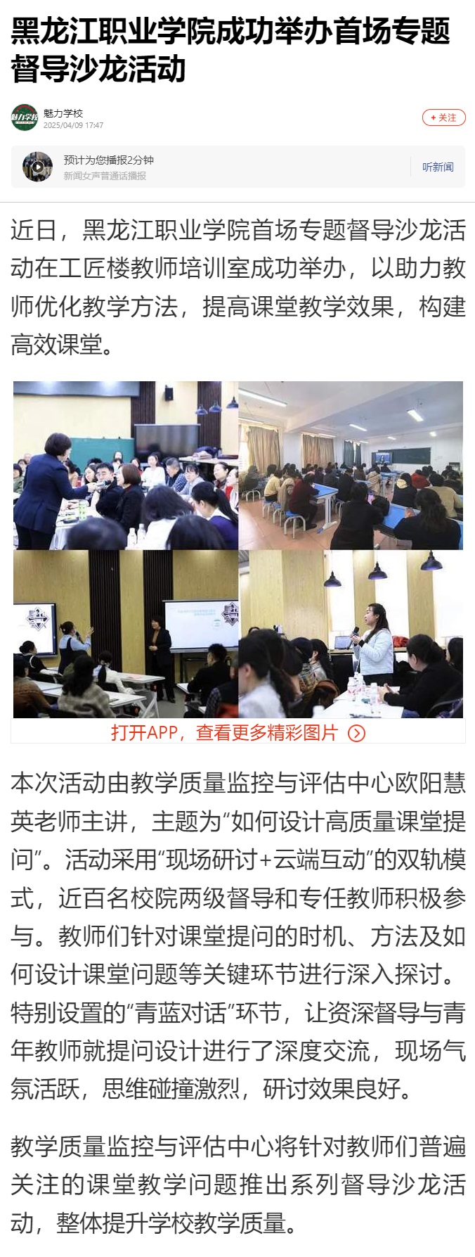 上一篇:【一点资讯】黑龙江职业学院成功举办首场专题督导沙龙活动