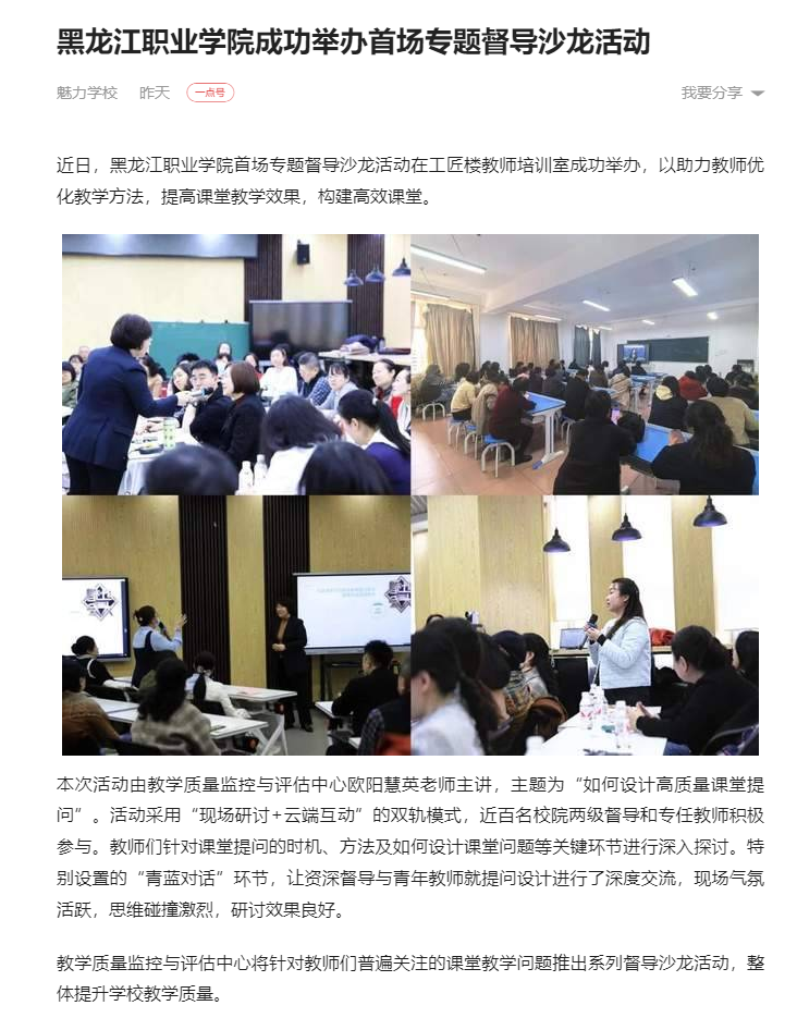 【一点资讯】黑龙江职业学院成功举办首场专题督导沙龙活动