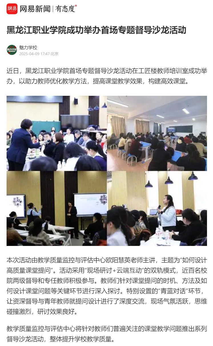 【网易新闻】黑龙江职业学院成功举办首场专题督导沙龙活动