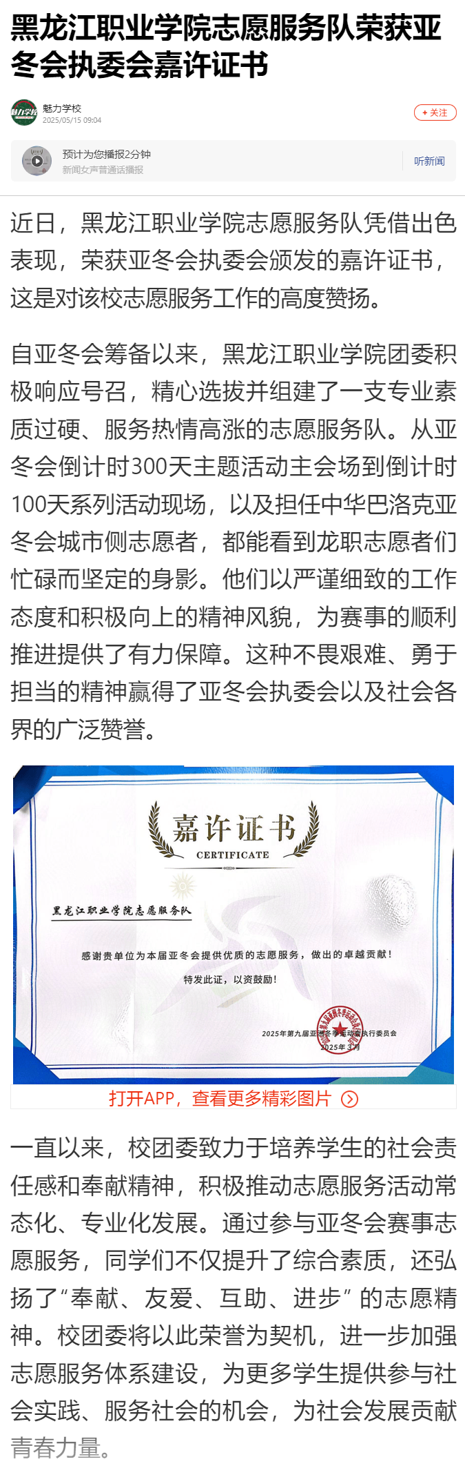 上一篇:【网易新闻】黑龙江职业学院志愿服务队荣获亚冬会执委会嘉许证书