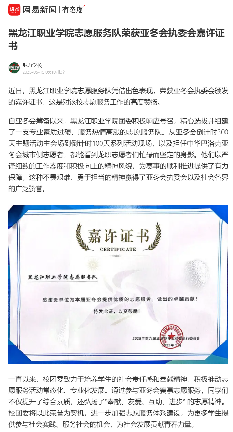 下一篇:【搜狐新闻】黑龙江职业学院志愿服务队荣获亚冬会执委会嘉许证书