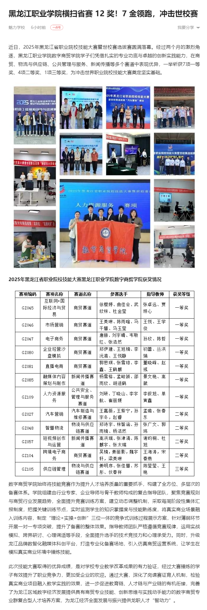 上一篇:【百度新闻】黑龙江职业学院横扫省赛 12 奖!7 金领跑,冲击世校赛