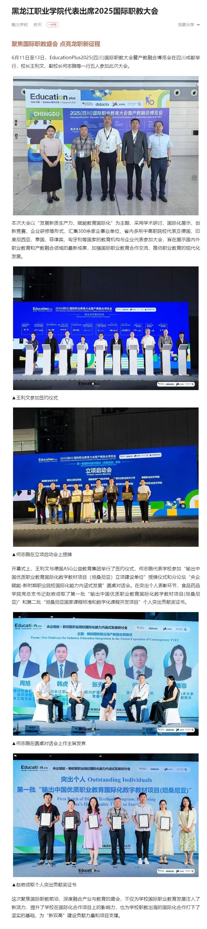 【一点资讯】黑龙江职业学院代表出席2025国际职教大会