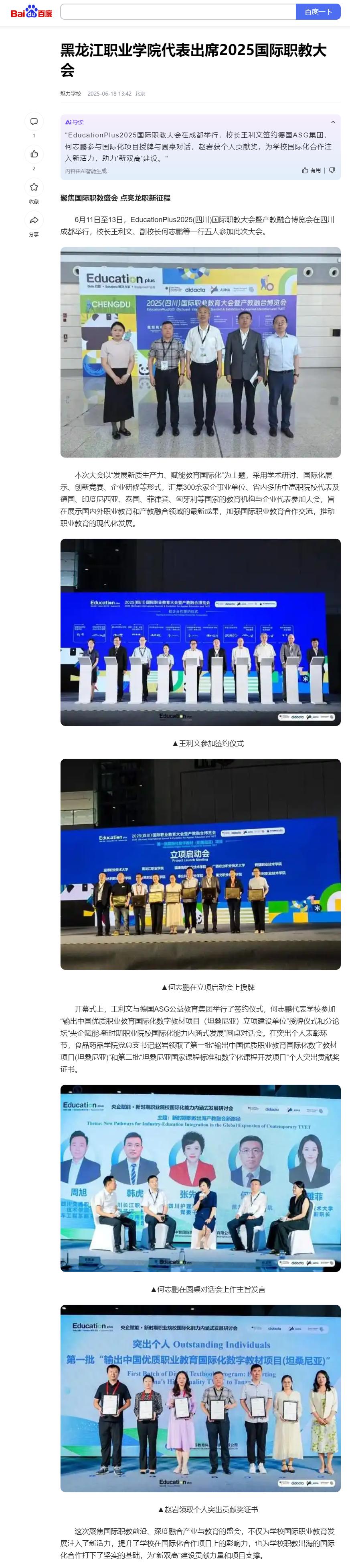 【百度新闻】黑龙江职业学院代表出席2025国际职教大会