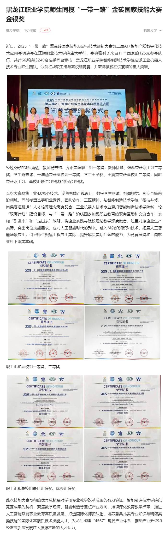 下一篇:【今日头条】黑龙江职业学院师生同揽“一带一路”金砖国家技能大赛金银奖