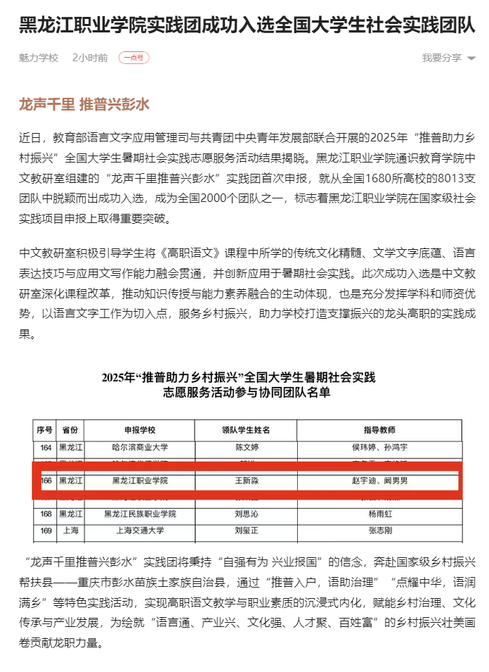 上一篇:【百度新闻】黑龙江职业学院实践团成功入选全国大学生社会实践团队
