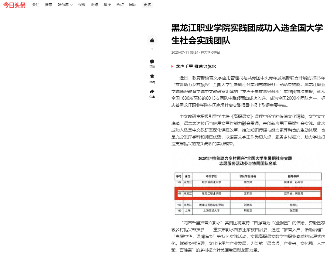 下一篇:【百度新闻】黑龙江职业学院实践团成功入选全国大学生社会实践团队