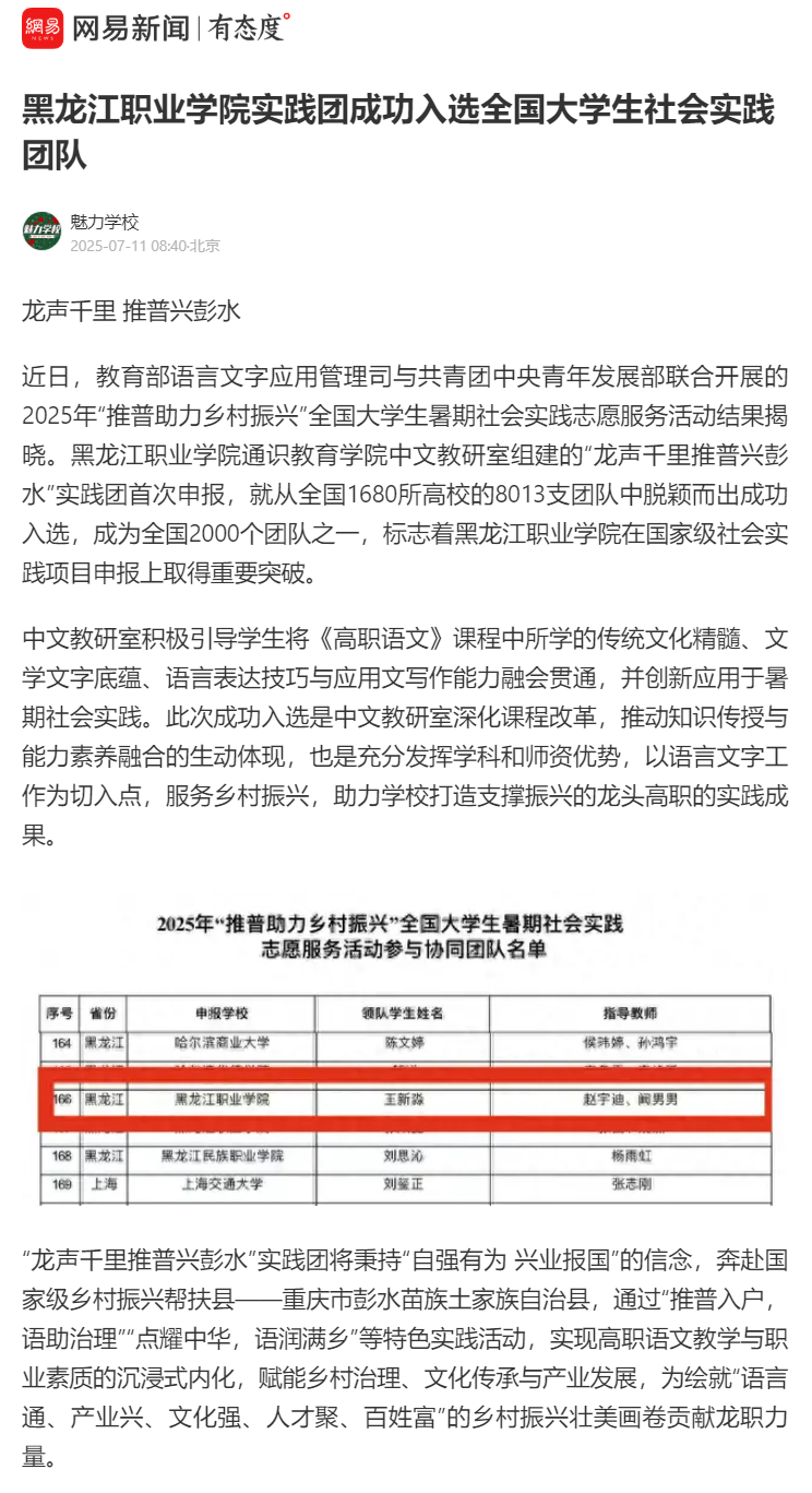 下一篇:【搜狐新闻】黑龙江职业学院实践团成功入选全国大学生社会实践团队