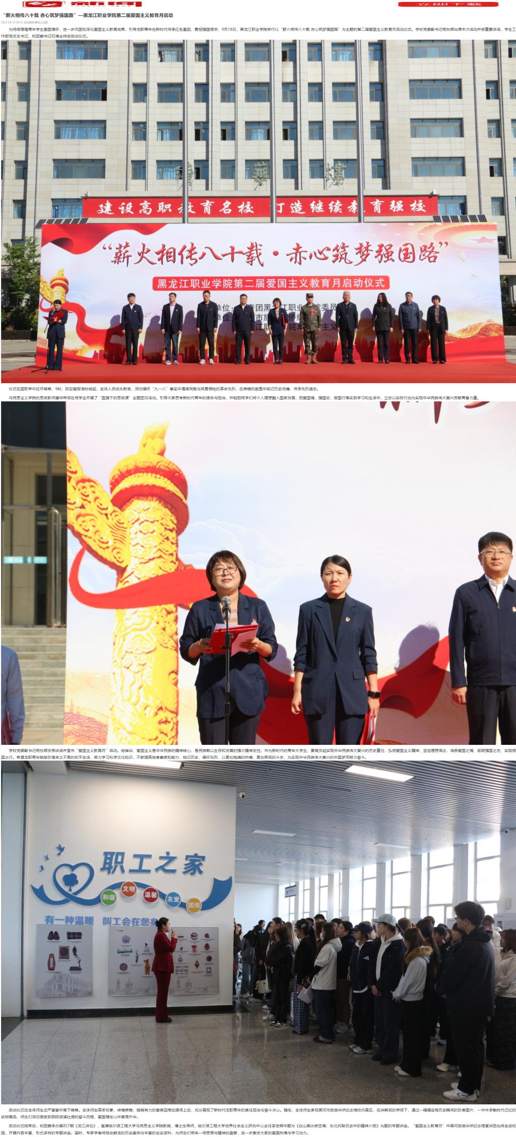 下一篇:【新浪新闻】黑龙江职业学院爱国主义教育月启幕,薪火相传筑强国路