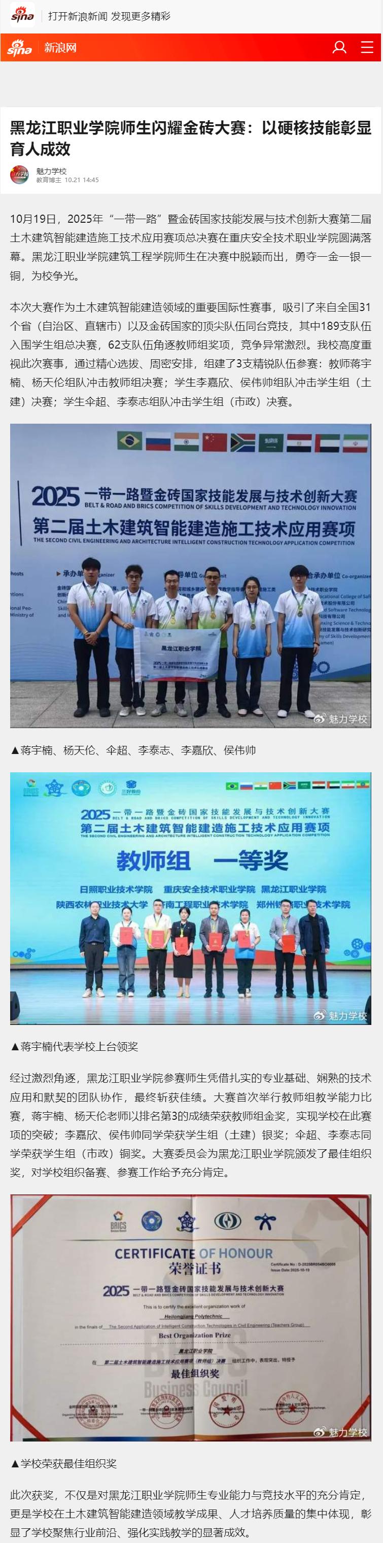 【新浪新闻】黑龙江职业学院师生闪耀金砖大赛:以硬核技能彰显育人成效