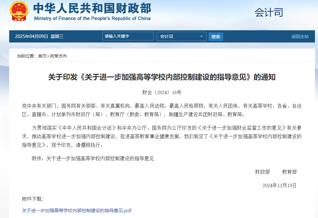 根据省教育厅省财政厅关于进一步加强高等学校内部控制建设工作的部署,现将财政部教育部印发的《关于进一步加强高等学校内部控制建设的指导意见》全文发布,请教职员工认真研读学习,积极参与学校内部控制建设工作。