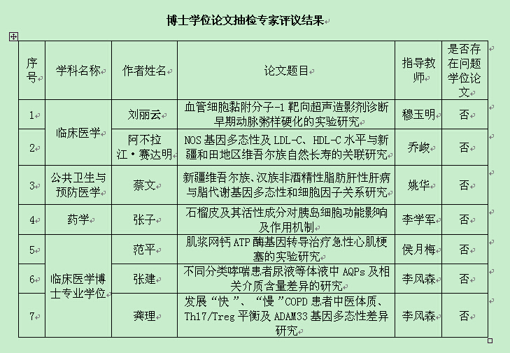 本次抽检结果再次表明,我校博士研究生教育质量和科研能力处于较高水平。博士学位论文抽检有助于促进我校研究生培养质量监控体系的完善,为培养优秀的高层次医学人才打下坚实的基础。(辛萍审 李建华编发)
