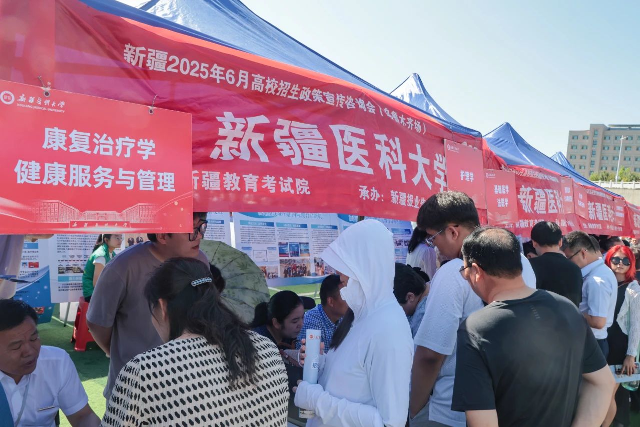 6月28日,2025新疆高校招生政策宣传咨询会(乌鲁木齐场)在新疆医科大学雪莲山校区体育场举行