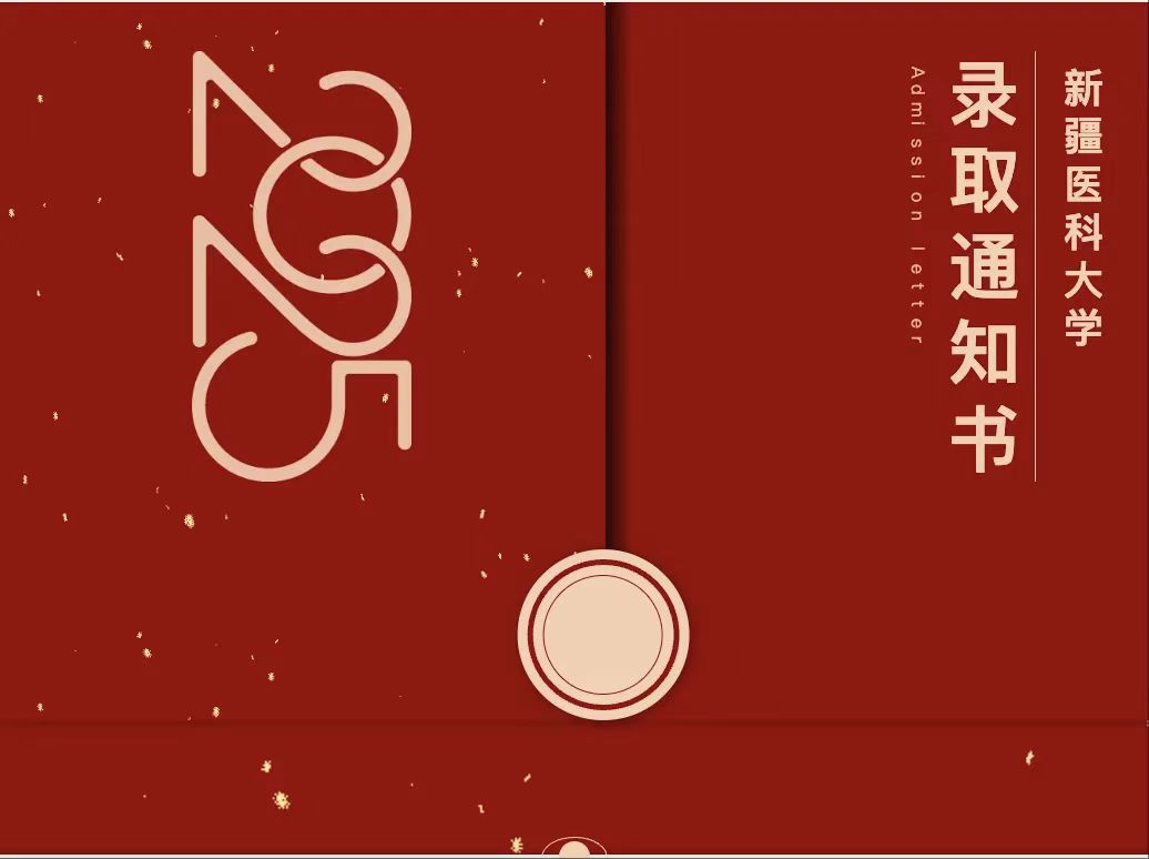 热烈的红色封皮,印着校徽与 “新疆医科大学录取通知书” 字样,校园标志性建筑以线条勾勒,简约中透着厚重。这抹红,是努力的成果,更是新医大向你发出的 “逐梦邀请”—— 欢迎加入 “新医人” 大家庭!