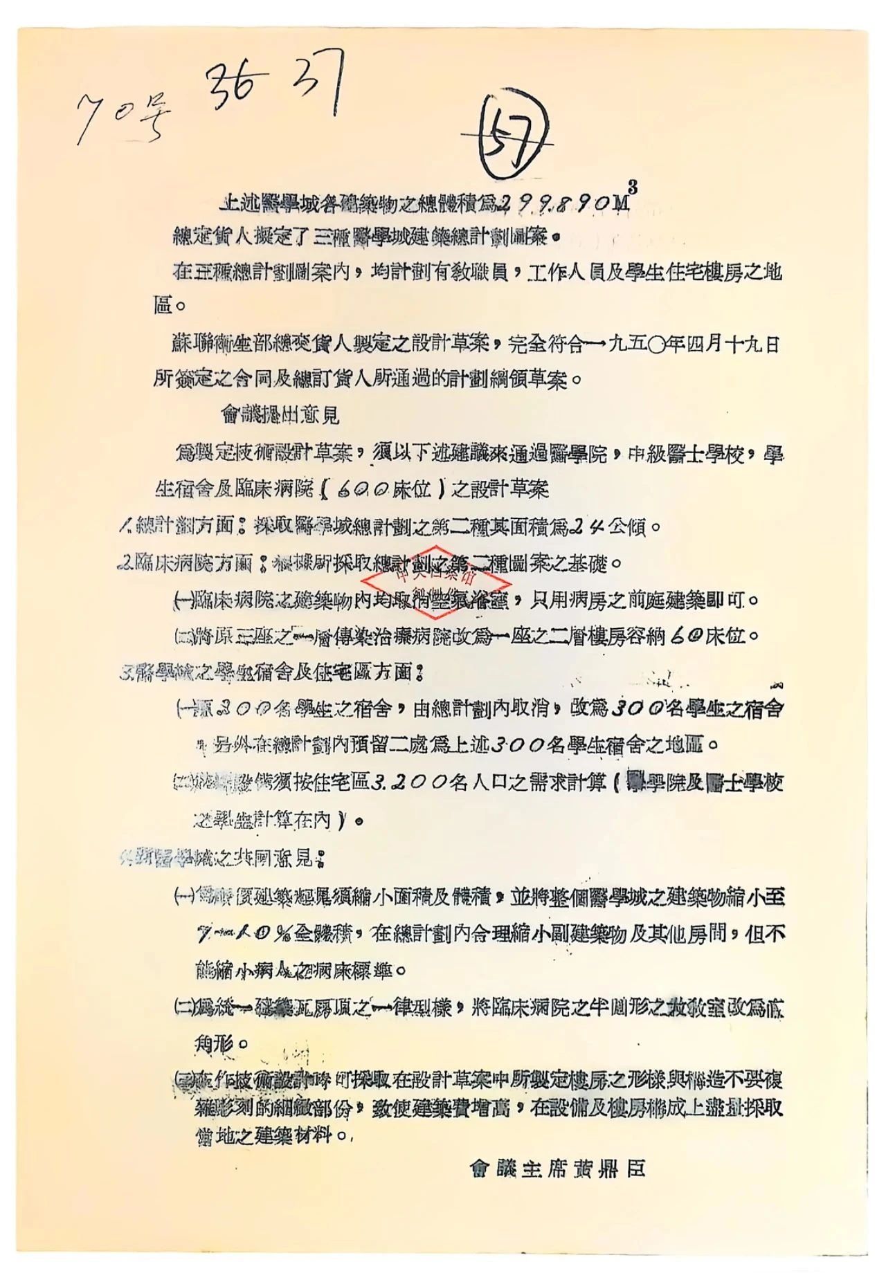 时任卫生部医政局局长的黄鼎臣主持审查新疆省迪化市建筑保健区(医学城)设计草案之会议记录(收藏于中央档案馆)