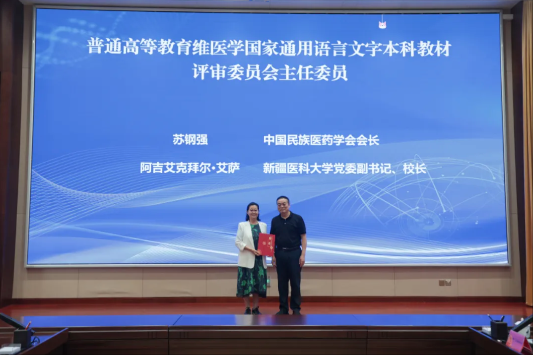 维医学专业国家通用语言文字本科教材的评审委员会成员与编写人员来自北京中医药大学、上海中医药大学、天津中医药大学、陕西中医药大学、新疆医科大学、自治区维吾尔医医院(自治区第二人民医院)等单位的专家学者。会议举行了聘书颁发仪式,正式聘请普通高等教育维医学国家通用语言文字本科教材评审委员会的主任委员、副主任委员及委员,以及系列教材的主编和副主编,受聘专家将肩负起教材编写与审定的核心重任。