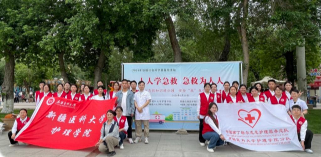 学院与新疆维吾尔自治区红十字会合作,与乌鲁木齐市红十字签署合作协议,持续进行应急救护科普教育活动;成立校内“EMT”急救社团、“南丁格尔志愿者服务队”“志愿者协会”开启校园应急救护志愿服务。