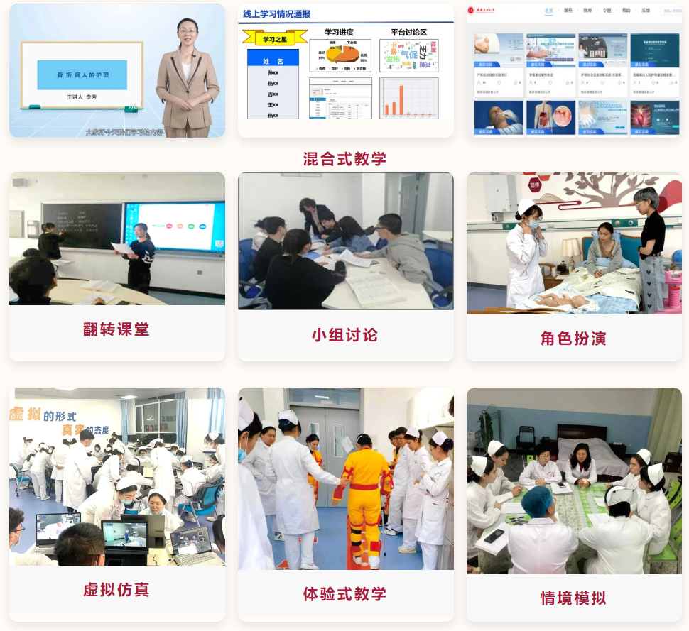 二阶“临床融合”:以真实临床病例为载体,通过《内科护理学》《外科护理学》等核心专业课程,采用翻转课堂、小组讨论、体验式教学、情景模拟等方法,将疾病护理与跨学科知识(如康复、心理)结合,强化理论向临床思维的转化。