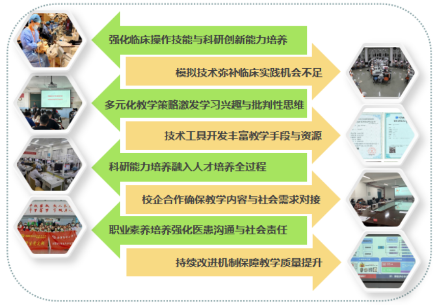 口腔医学以“教育理念创新——实践体系改革”双重维度展开探索。以新医科“医学、教学、科研、创新”多元协同理念为引领,提出教育理念改革,将新医科概念与社会医疗健康需求紧密结合,提高口腔医学人才的临床能力和科研水平。