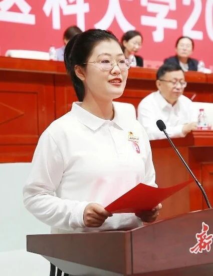 教师代表、国务院政府特殊津贴专家,药学院教授高晓黎在发言中深情回顾了自己与新疆医科大学共同成长的岁月,表达了对医药事业的热爱、对新疆土地的深情和一名共产党员科技报国的使命。她特别分享了其团队“孕马结合雌激素的新药研发与产业化”科研项目的艰辛与成就,并勉励全体新生要“做有温度的医者,先做有态度的学生。”希望同学们守护好学医的热情与初心,始终保持对生命的尊重与敬畏,在历练中沉淀、在挑战中坚守,在新医的广阔沃土上,立鸿鹄之志、练过硬本领,拓宽能力视野,实现人生梦想,成长为医术精湛、心怀仁爱的新医人。