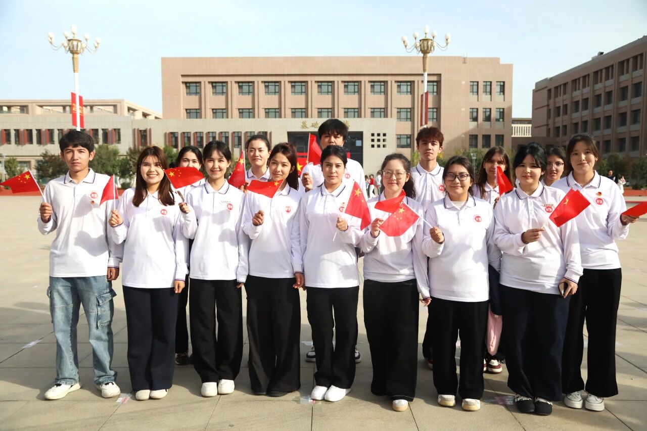 “五星红旗迎风飘扬,胜利歌声多么响亮……” 仪式最后,全场师生挥动着手中的国旗,齐声高唱《歌唱祖国》。这歌声,是祝福,是誓言,是凝心聚力的号角,更是奔赴未来的序曲。歌声汇聚成一片赤诚热烈的海洋,涌动着对祖国繁荣昌盛、国泰民安的最美好祝愿。