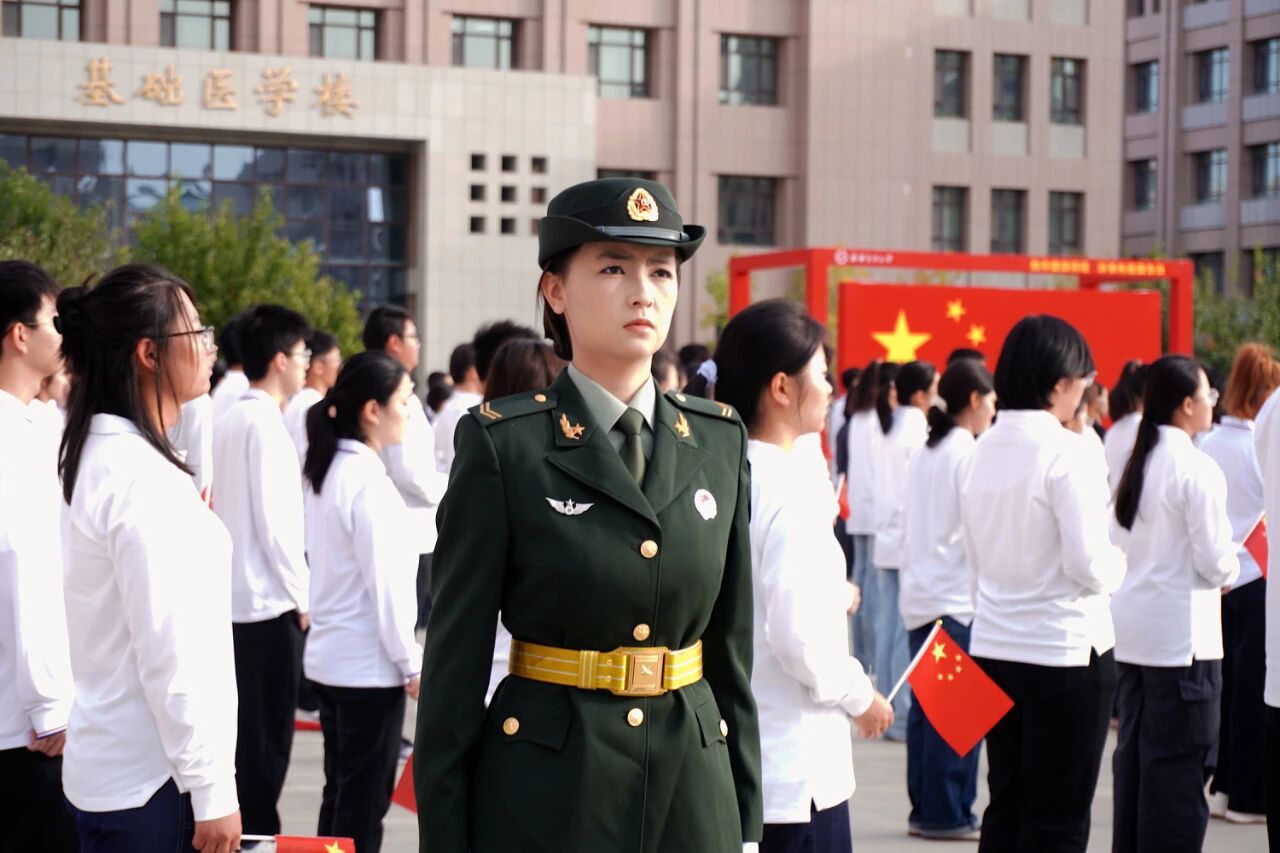 上午10时,升国旗仪式在新医师生们期待的目光中正式开始。国旗班队员目光如炬、步履坚定,护卫着鲜艳的五星红旗庄严入场。那一刻,全场肃立,每一道目光都充满了对祖国的无限敬仰。