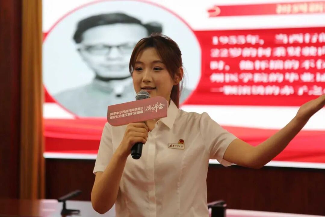 “在风沙与绿洲交织的天山脚下,一位88岁的医者仍骑着锈迹斑斑的‘二八’自行车,用一生铸就“红医精神”的永恒丰碑。”药学院的侯瑞琪同学从新疆医科大学建校元老何秉贤教授六十四载如一日,将“红医精神”的种子播撒在天山南北的故事娓娓道来,“红医精神”展现了一代代新医人以仁心仁术守护各族群众健康的使命,激励着同学们学习真本领,练就硬技术,勇担医者使命。