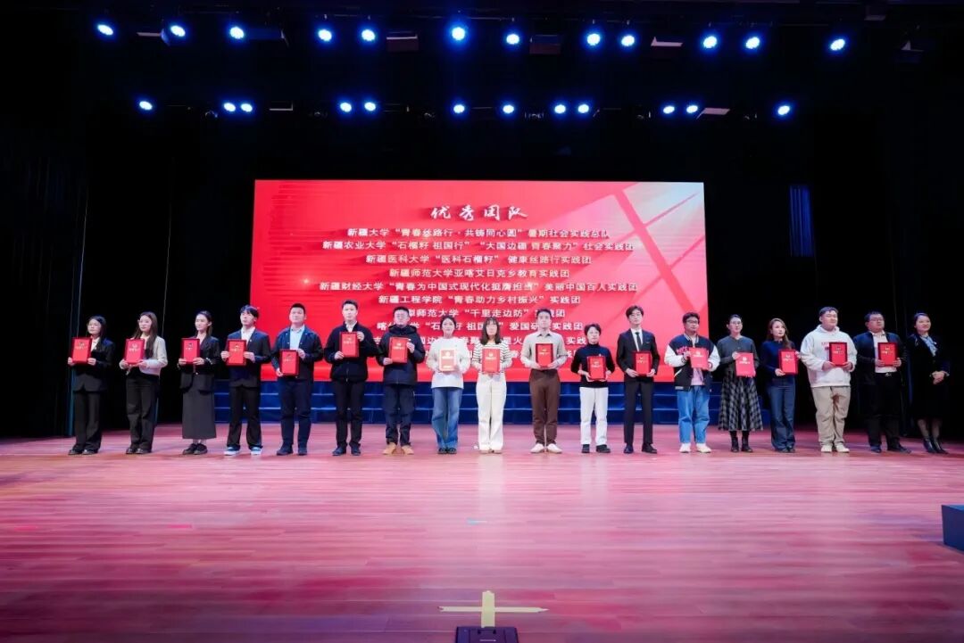 我校荣获2025年自治区大学生暑期“三下乡”社会实践活动优秀组织单位,“医科石榴籽”健康丝路行实践团荣获优秀团队,校团委沈雪丽荣获优秀指导教师。总结分享会上我校“医科石榴籽”健康丝路行实践团进行了情景剧汇报演出。