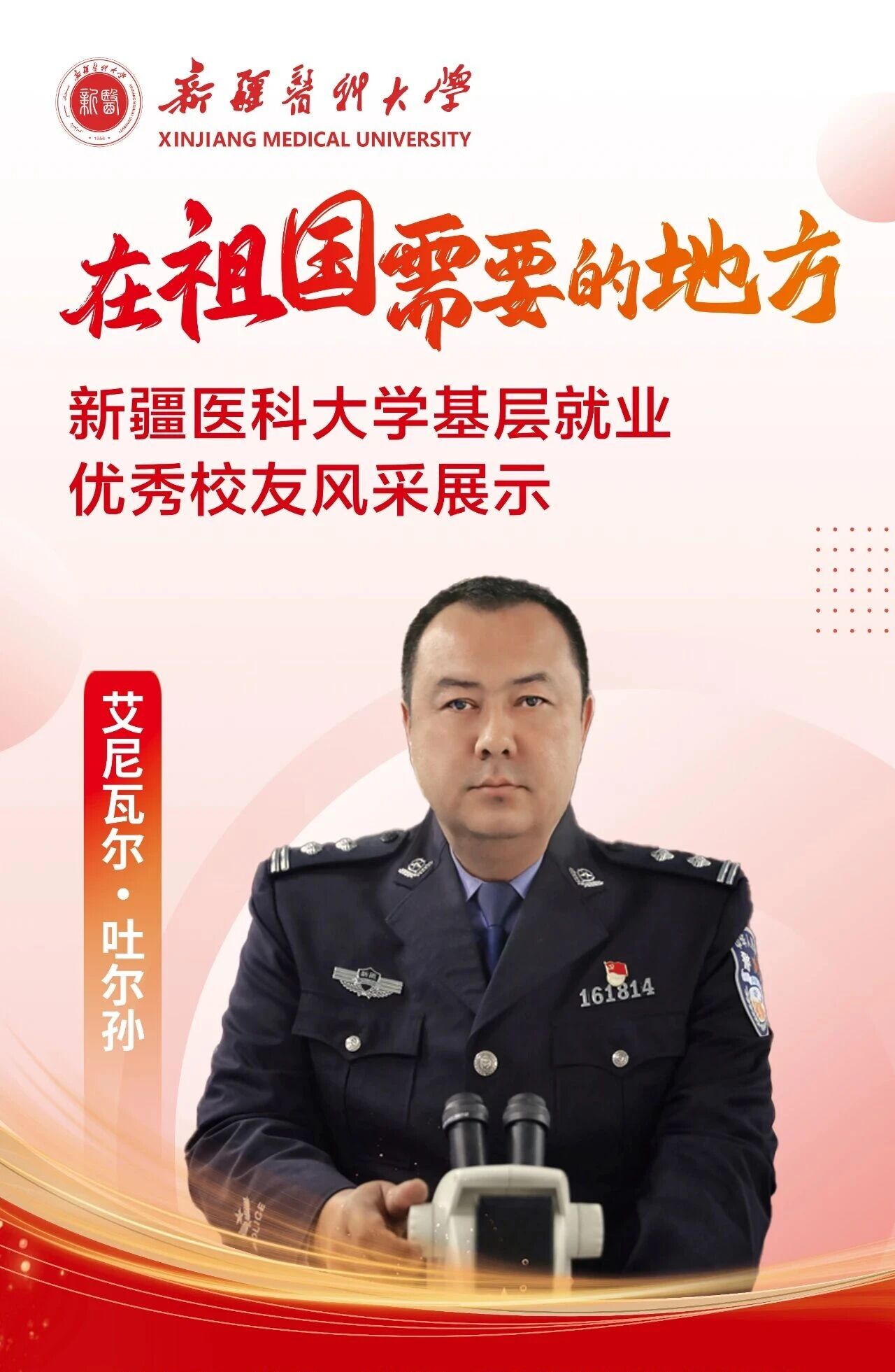 艾尼瓦尔·吐尔孙,中共党员,2004年毕业于高职学院临床医学专业,现任莎车县公安局刑侦大队副大队长、副主任法医师。他凭借精湛医术和坚定信念,在公安法医岗位坚守十八载,生动诠释了“为逝者代言,替生者维权”的职业信仰。因突出贡献,获评“全国最美基层民警”“自治区先进工作者”,荣立个人二等功2次、三等功1次。