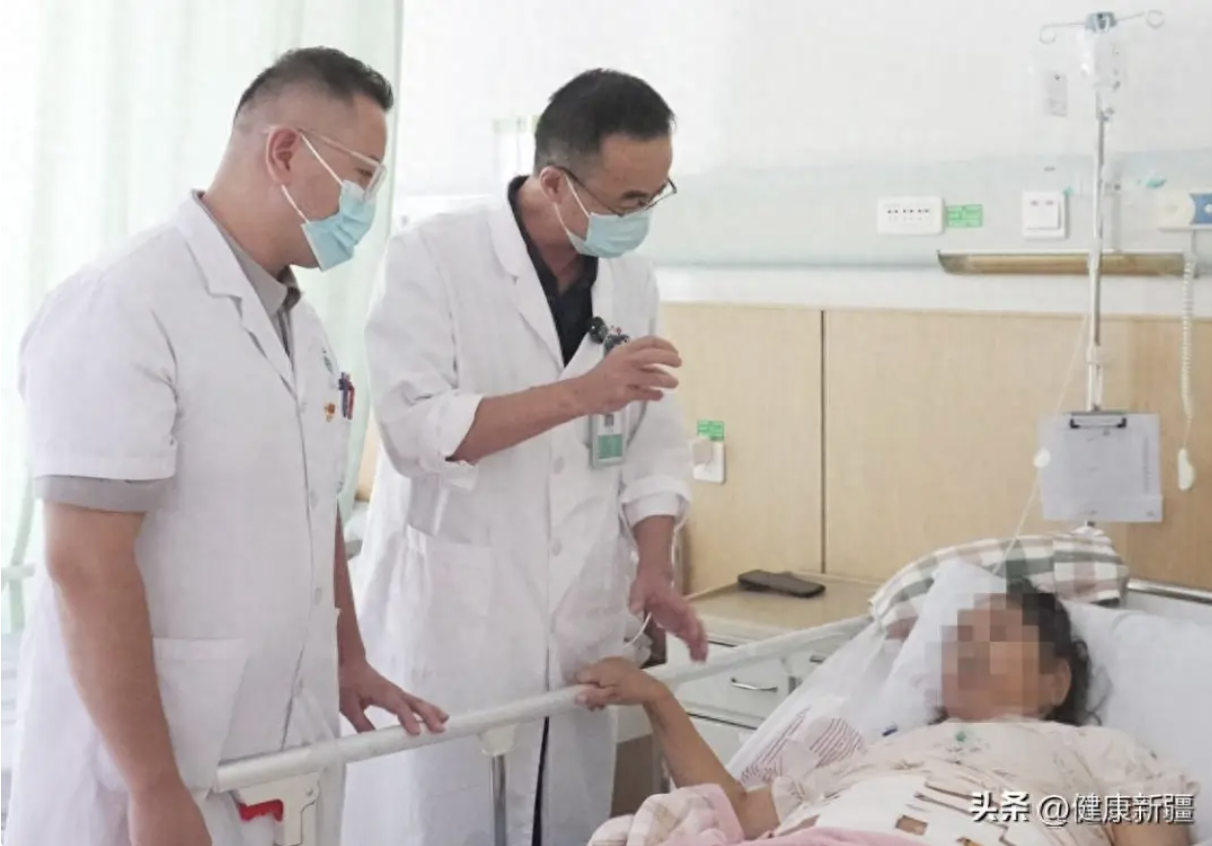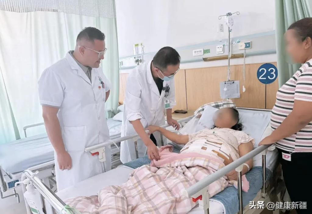 当61岁的麦女士来到新疆医科大学第六附属医院普外科时,医生们十分吃惊——坐在轮椅上的她腹部高高隆起,宛如怀着多胞胎的临产孕妇,CT等影像检查可见腹中巨大肿瘤撑满腹腔,将肠管压缩成一小团,向上推挤胸腔,严重压迫双肺,以至于她无法顺畅呼吸,并影响正常进食及排便。新疆医科大学第六附属医院普外科团队成功为她切除了肿瘤,病理检查明确肿瘤性质为阑尾黏液癌,目前麦女士术后情况稳定,正在进行腹腔灌注化疗。