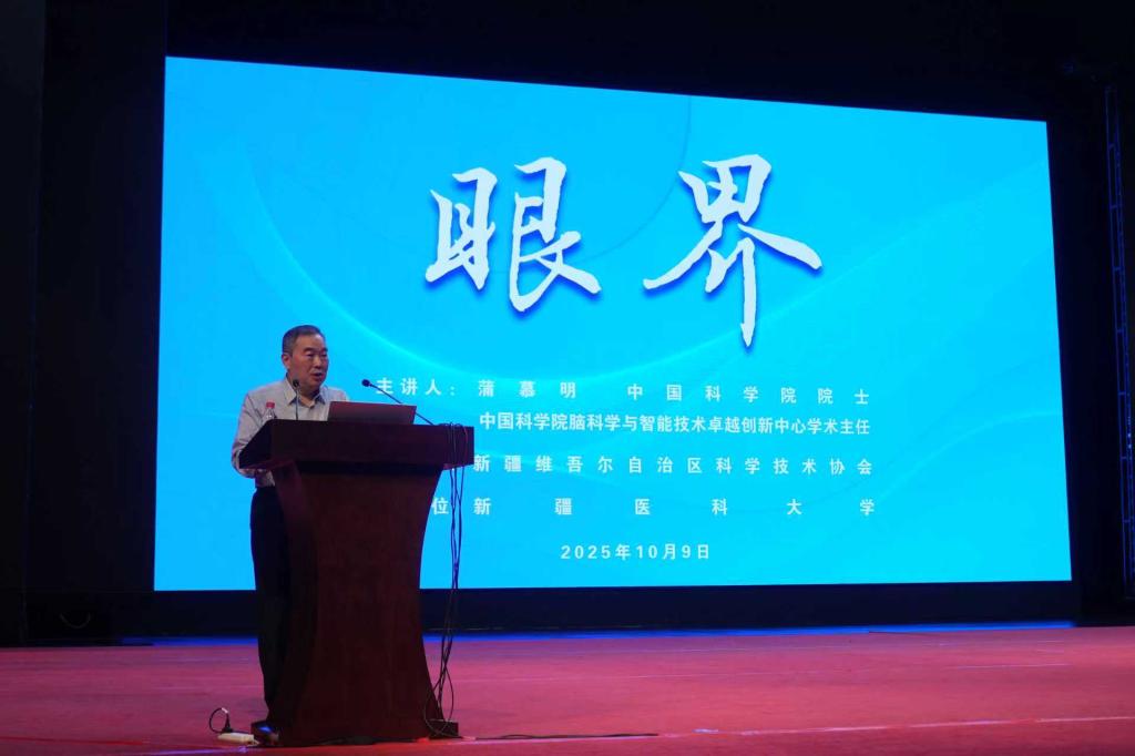 10月9日,由新疆维吾尔自治区科协主办,新疆医科大学承办的2025年第十一期“眼界”讲堂在新疆医科大学文创中心举行。本期讲堂特邀中国科学院院士、中国科学院脑科学与智能技术卓越创新中心学术主任蒲慕明院士,以“脑科学与人工智能”为主题,为来自新疆医科大学、新疆大学、新疆师范大学、新疆农业大学等高校的1000余名师生带来了一场精彩的学术报告。