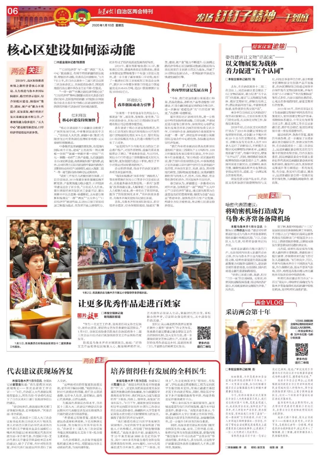 出版日期:2020-01-10 A06版●自治区两会特刊 新疆日报