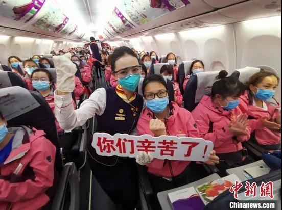 “白衣天使们,亚克西,我是本次航班的机长,寒冬时节,你们远赴千里,逆行出征,英勇无畏的身影感动无数人;而今,新疆春回大地,你们结束‘战斗’,让我们接你们回家,辛苦了,战‘疫’英雄……”本次航班机长张亮通过机上广播向英雄深情“告白”。