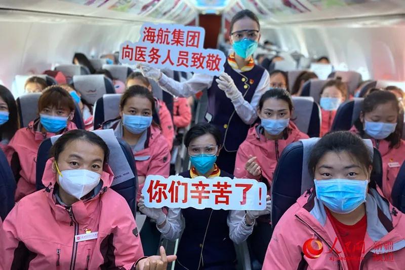 海航集团旗下乌鲁木齐航空公司机组成员与医疗队员们合影留念