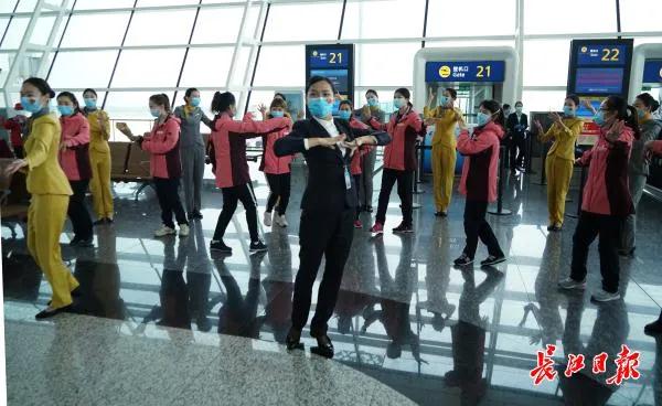 机场工作人员用热情的新疆舞蹈为白衣战士送别