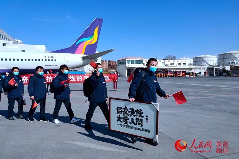 逆行为人民,功成归故里。3月26日16时许,随着一架海航集团乌鲁木齐航空客机降落在乌鲁木齐地窝堡国际机场,在武汉奋战了59个昼夜的新疆首批支援湖北医疗队142名队员返疆。