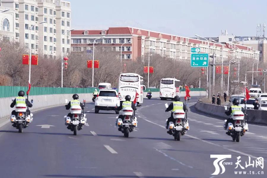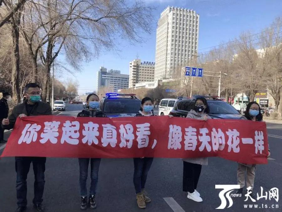 为迎接英雄回家,乌市公安局交警支队派出车队全程护送医疗队前往休养驻地。机场高速上每隔200米左右就有一位警务人员向车队敬礼致敬,路遇的市民纷纷掏出手机拍摄见证英雄归来的一幕。