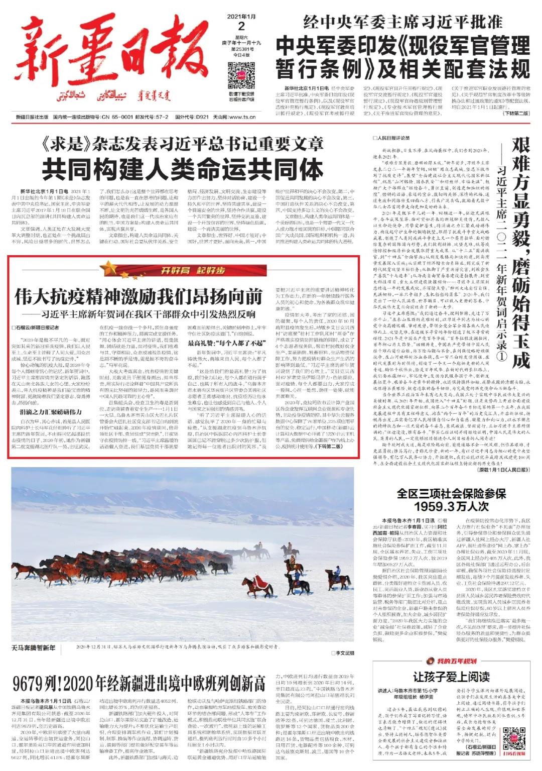 1月1日,新疆广播电视台-新疆卫视-《新疆新闻联播》节目播出了新疆医科大学一线医务人员聆听国家主席习近平发表2021年新年贺词的感受。习近平主席饱含深情的话语,让新疆医科大学的医务人员倍感温暖和振奋。