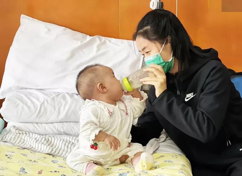 11月1日,病房中妈妈正在给术后的小月喂奶