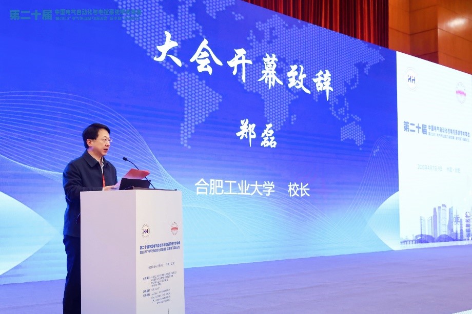 开幕式上,郑磊校长代表合肥工业大学致欢迎辞,对参加本次会议的各位领导嘉宾、专家学者表示热烈的欢迎,对大家长期以来对我校事业发展的关心和支持表示衷心感谢。他表示,本次会议的召开,各位专家交流思想、碰撞智慧、分享成果,一定会进一步推进电气相关学科专业的发展,促进产学研用尝试融合,助推“碳达峰、碳中和”目标的如期实现。