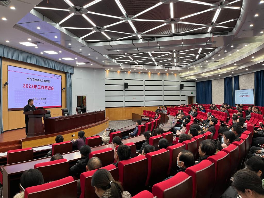 3月22日下午,电气与自动化工程学院在屯溪路校区学术会议中心大报告厅召开了2023年工作布置会。副院长孙伟主持会议,学院领导班子成员及全院教职员工参加了会议。