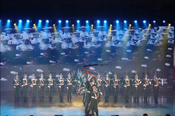 《钢枪之舞,战士之魂》是一支军旅题材的舞蹈节目,紧紧围绕“请党放心,强国有我”的主题,以战士与钢枪的故事为切入点,生动地演绎了战士们勇往直前的坚韧品质,以及保卫祖国的雄心壮志。舞台上,29名电气学子身穿礼兵服,手握钢枪,刻画着战士们的军旅生涯,组成了一支坚不可摧的队伍。他们的步伐整齐划一,口号回音嘹亮,目光坚定有力,热血持续沸腾,使在场观众深受震撼。