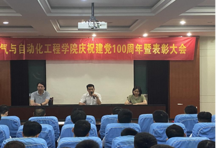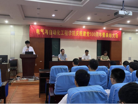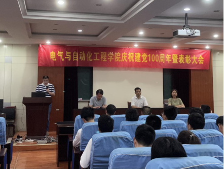 6月30日下午,在逸夫楼1117会议室,电气与自动化工程学院隆重召开庆祝中国共产党成立100周年暨表彰大会,院领导,学院评选表彰的先进基层党组织负责人、优秀共产党员、优秀党务工作者,党员师生代表等参加会议。大会由院党委副书记、纪委书记郑洁主持。