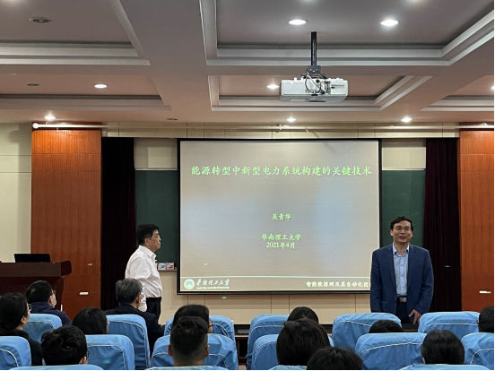 2021年4月20日上午9:00,受电气与自动化工程学院邀请,华南理工大学吴青华教授学术报告会在逸夫楼1117举行题为《能源转型中新型电力系统构建的关键技术》的学术报告会。中国科学院院士陈维江出席了本次报告会,电气与自动化工程学院的相关方向教师及学生也积极参加了本次报告会。电气与自动化工程学院院长丁立健教授主持了本次报告会。