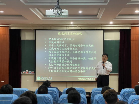 在报告会上,吴青华教授介绍了新型电力系统中配电网的变化及带来的挑战、如何提高城市配电网安全可靠性、如何利用新能源的发展结合通讯技术和人工智能技术构建更可靠及优化的电力系统等相关问题,并分析了大规模异质能源系统模型。最后吴青华教授介绍了华南理工大学能源研究院的基本情况与相关科研成果。