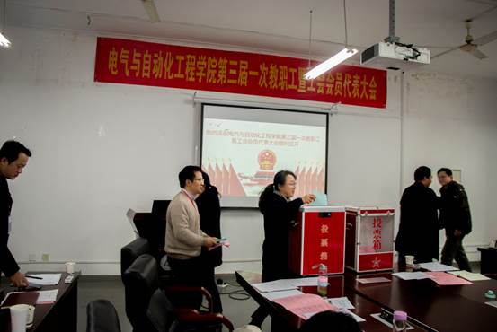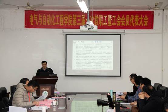 在雄壮的《国际歌》声中,电气与自动化工程学院召开第三届一次教职工暨工会会员代表大会胜利闭幕。